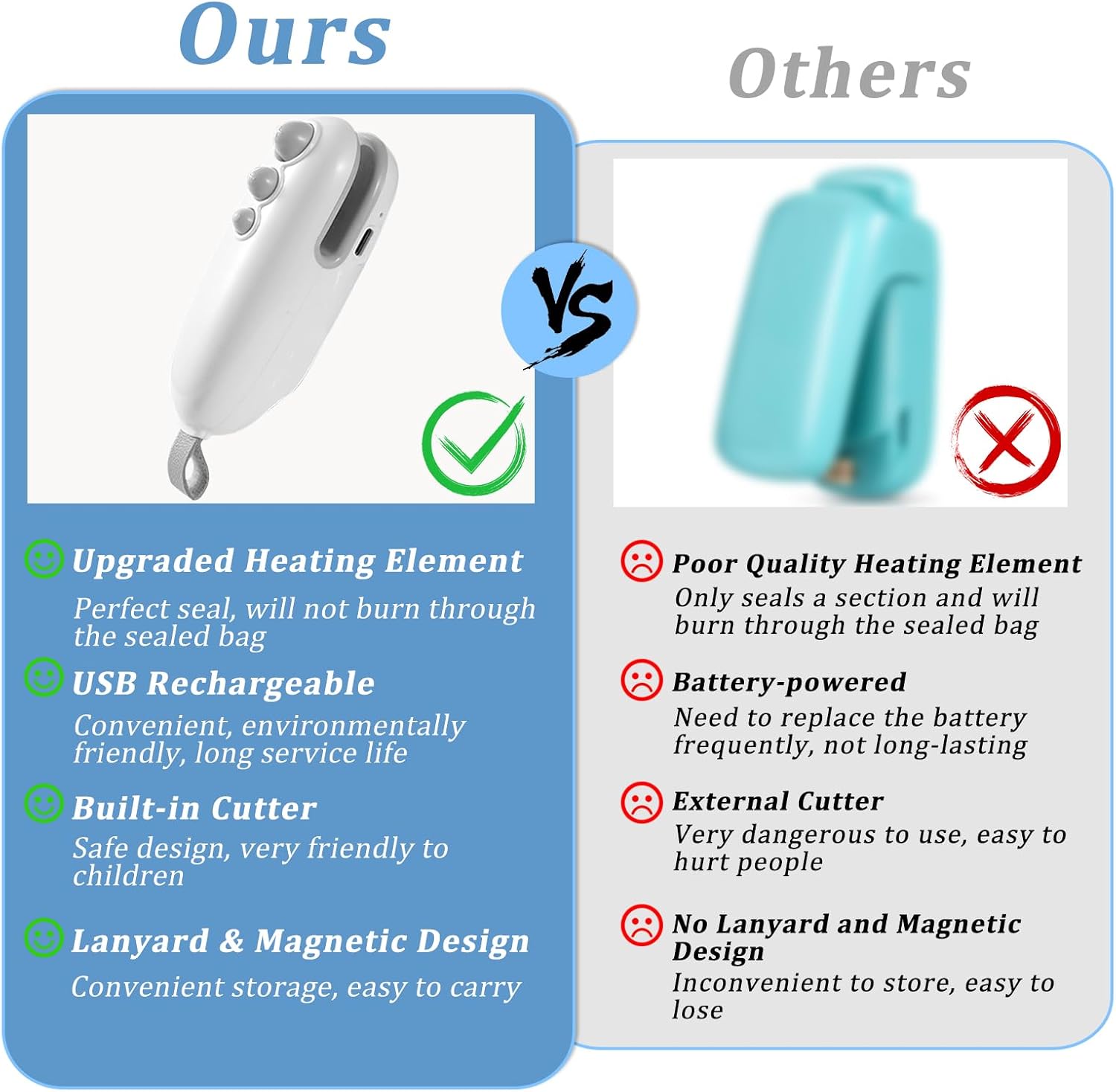 The high-quality mini 2-in-1 sealer and cutter are perfect for carrying on-the-go, handheld, and portable, making it ideal for travel, camping, and hiking trips.